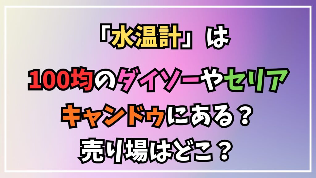 今回は、水温計が100均のダイソーやセリア、キャンドゥで販売されているかについて調査しました。