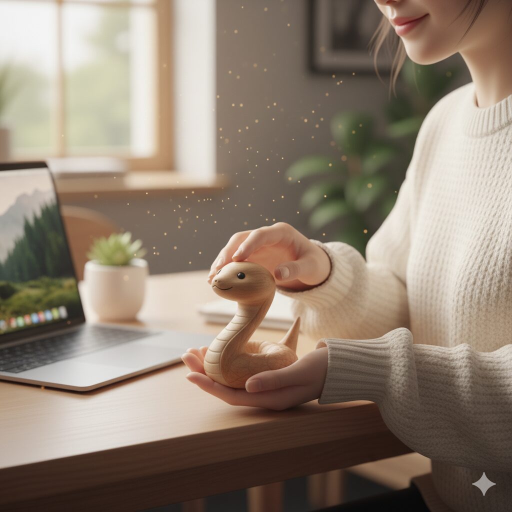 そのため、自宅で長時間仕事をする在宅ワーカーやリモートワーカーにとって、デスクに木の蛇の置物を置くことは、視覚的・心理的な癒やしにつながります。